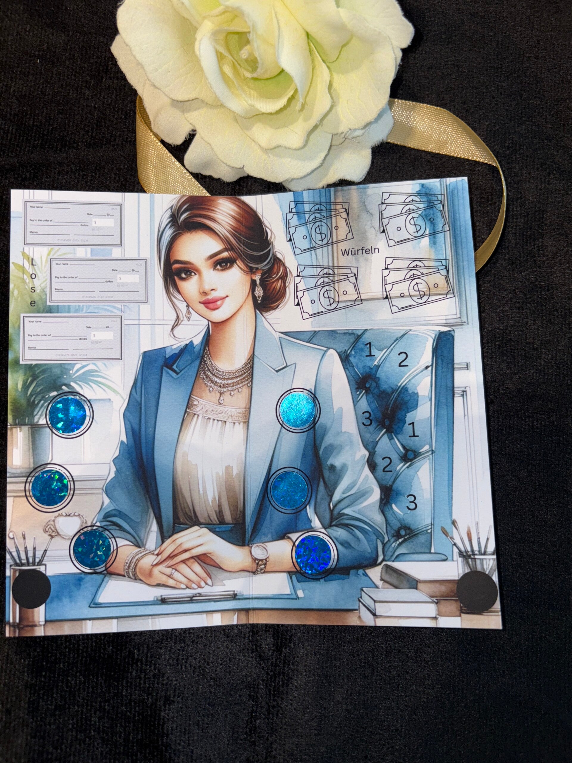 Bei mitgelieferten Kleinteilen wie z.b. Würfel, Lose, Rubbelhilfen, Plastikverpackungen, Büroklammern besteht Erstickungsgefahr sowie Gefahr sich zu verschlucken, stechen oder zu schneiden.