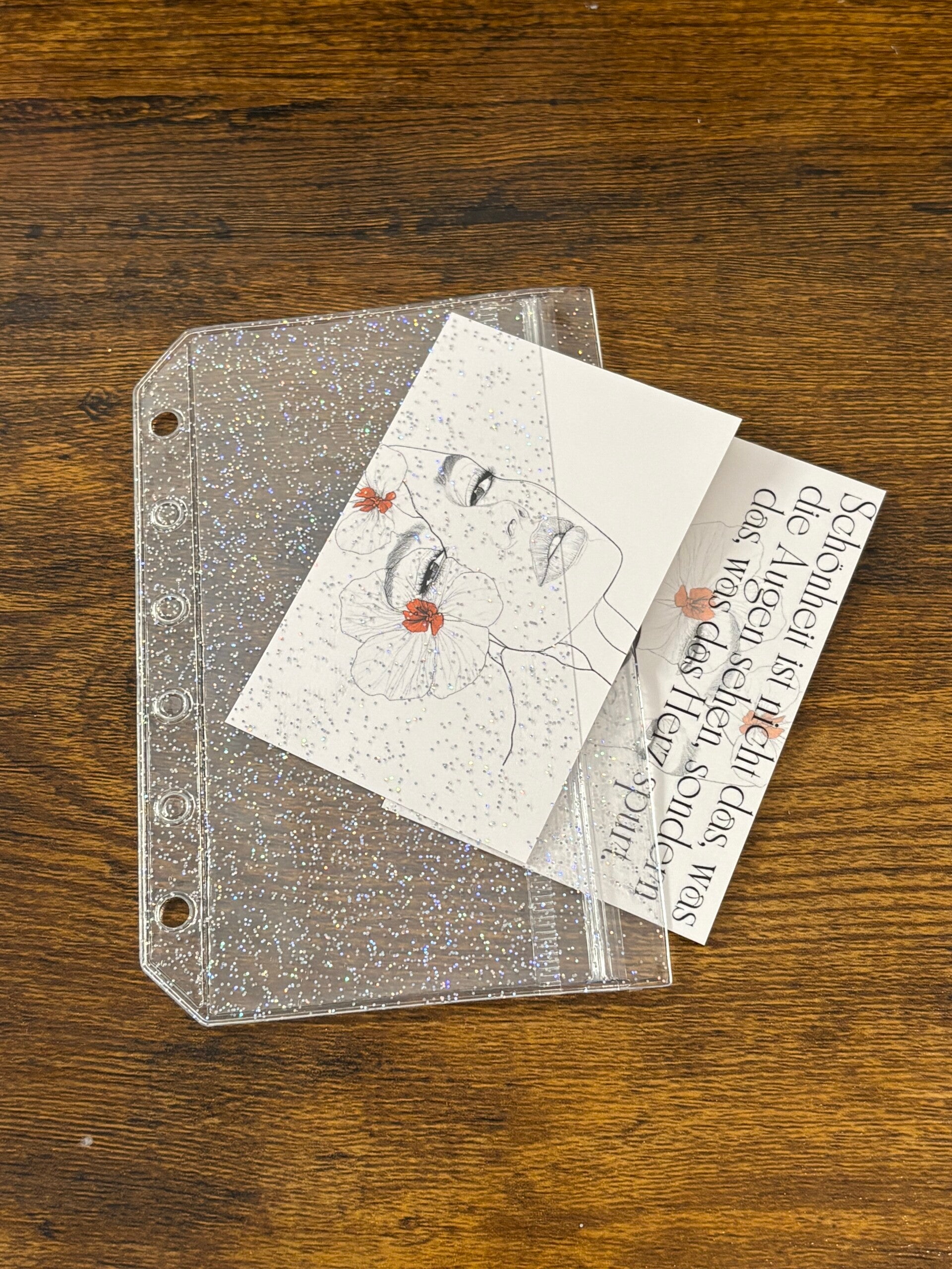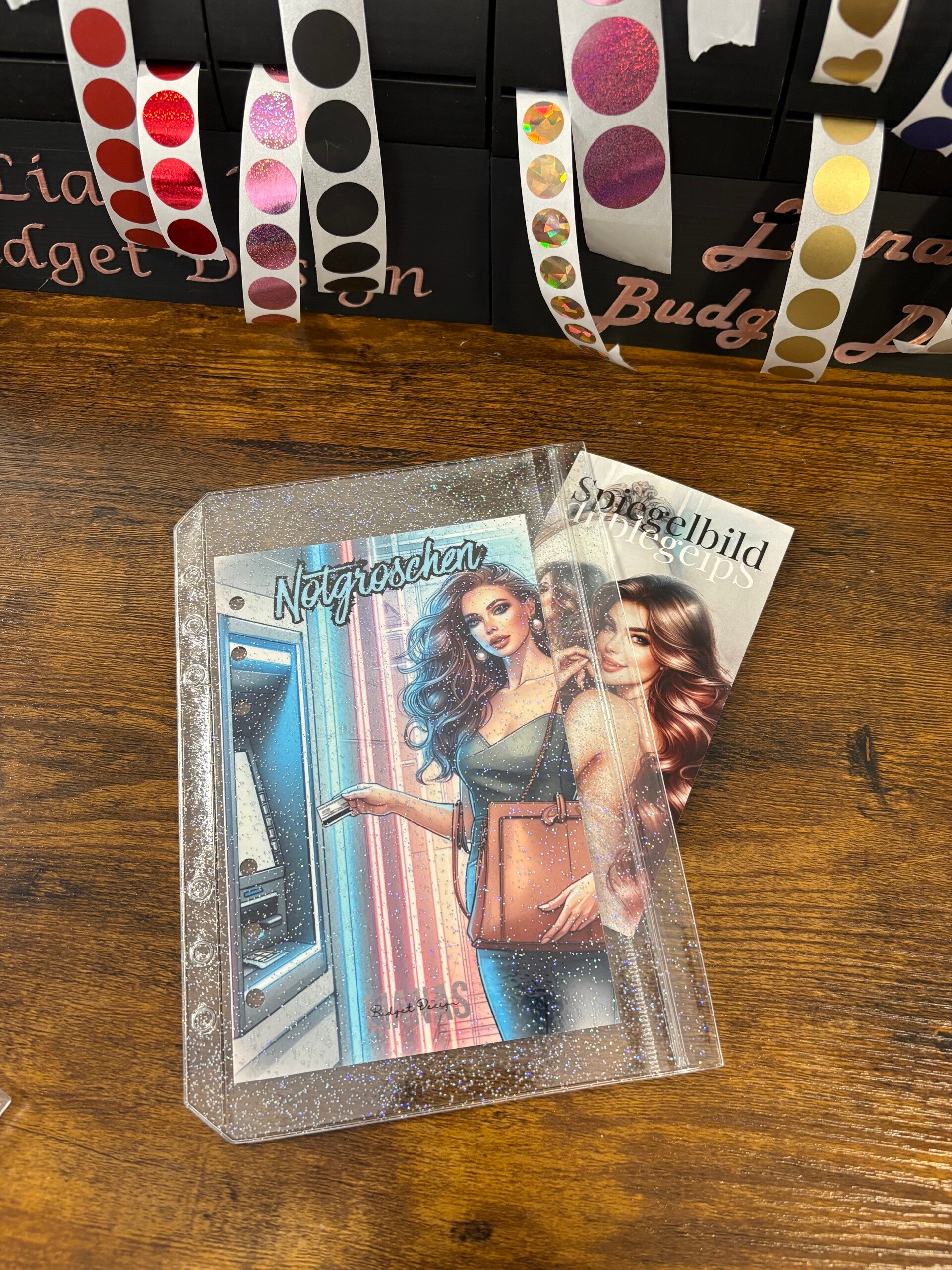 Diese Hüllen sind Doppellagig mit Druckverschluss. Sie sind komplett transparent mit Glitzer. Sie haben 2 Taschen. Vorne kannst du deine Challenge rein packen und in die hintere Tasche kannst du dein Geld rein packen. Die hintere Tasche hat einen Druckverschluss, damit dein Geld nicht raus fällt.
