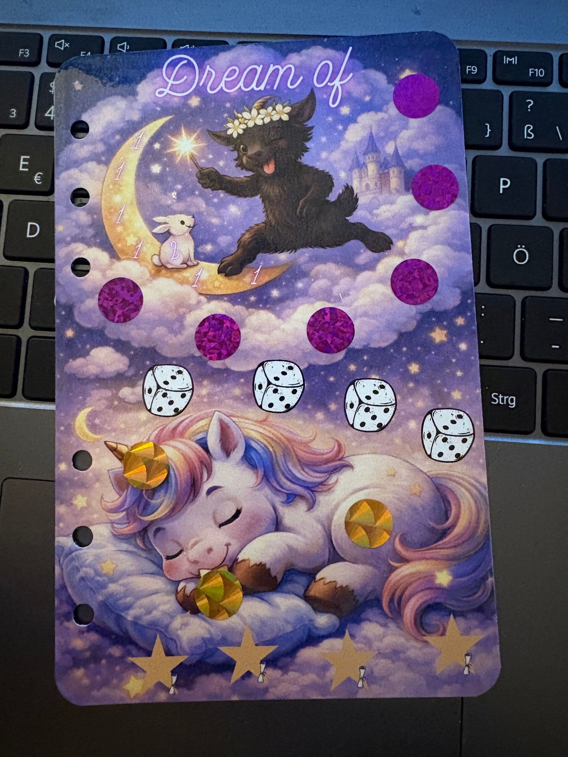 rubbeln, lose ziehen, abstreichen und Würfel zum abstreichen